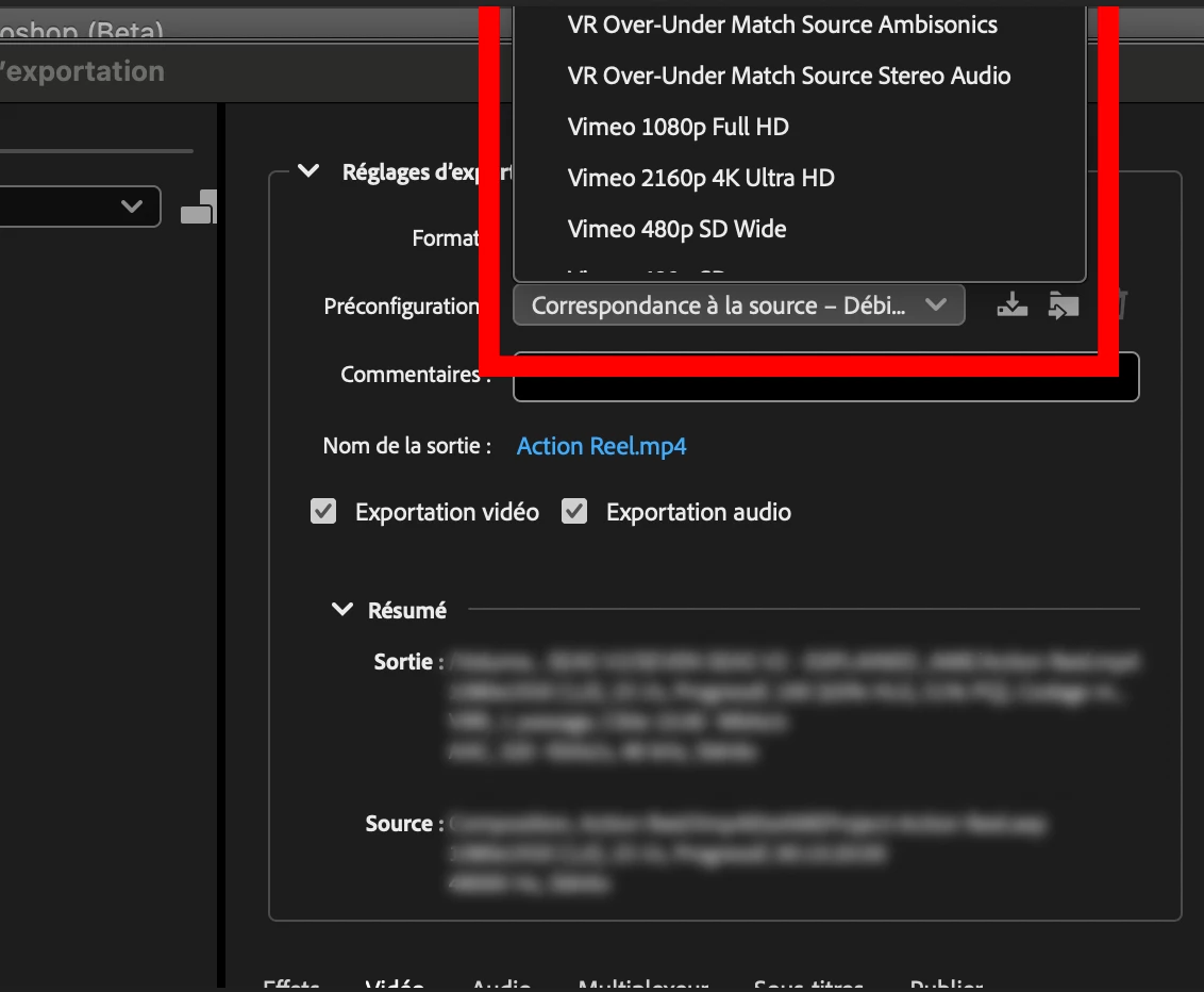 Just a quick remark on the Adobe Media Encoder settings pannel :