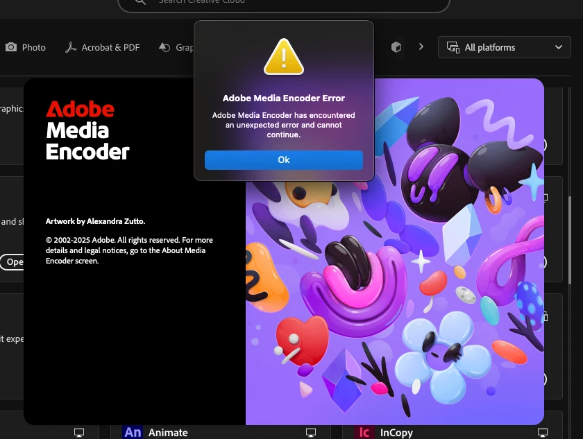 Adobe Media Encoder has encountered an unexpected error and cannot continue.