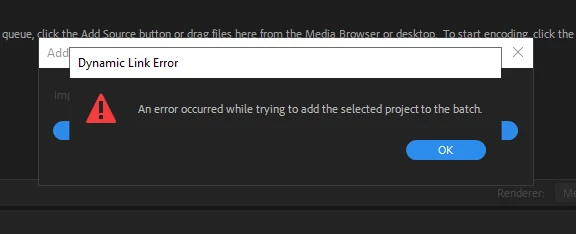 "an error occurred while trying to add the selected project to the batch" As the screenshot below shows.