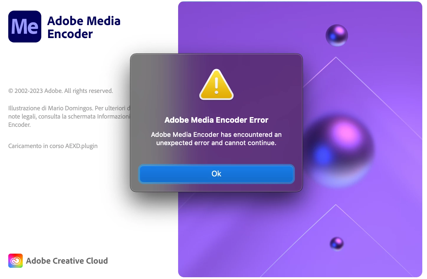 Lately I have some issues with Media Encoder (it's the latest version of 2023) anytime that I try to lunch it...it appears me "Adobe Media Encoder has encountered an unexpected error and cannot continue."