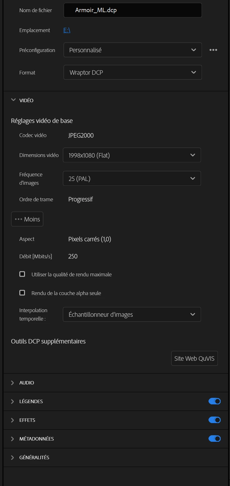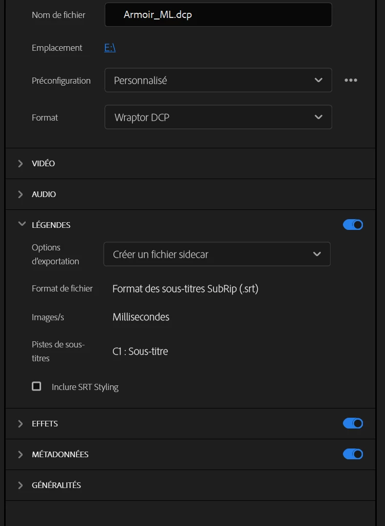 I need to add subtitle in DCP Wraptor and it seems that Premiere does'nt seem capable of doing that. When I try, it create a .srt file outside of the wraptor instead of including an XML encoded file corresponding the the .srt file. And the QuVIS web site is broken.