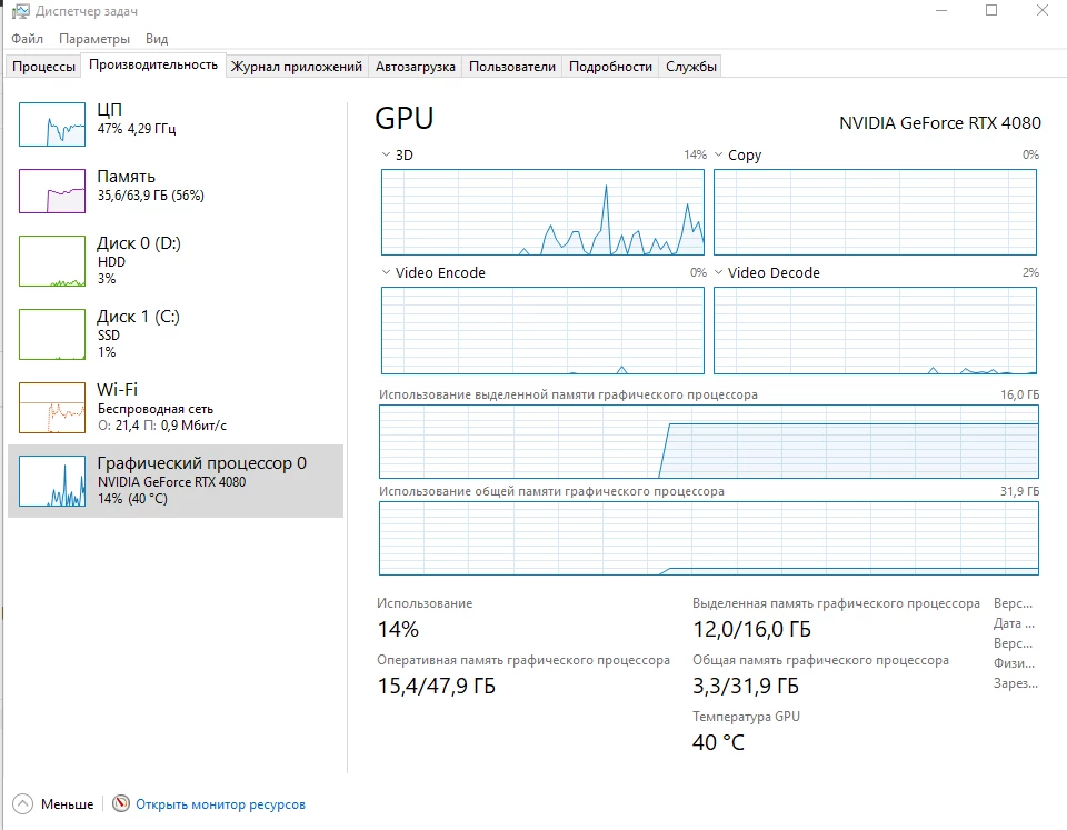Win10 updated, RTX 4080 with 551.61 and an NVIDIA fix driver, i7 13700 KF, 64 Gb, SSD.