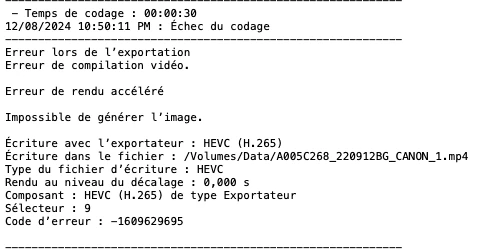 - then I import this Jpeg sequence into After Effect as "all files/Camera RAW" in order to be able to apply my colorimetric settings via Camera RAW then I export in H265 in Media Encoder. It has always worked well except that recently, I have an error message (screenshot attached). Note that it works well on my Macbook Pro (from 2019 I think).