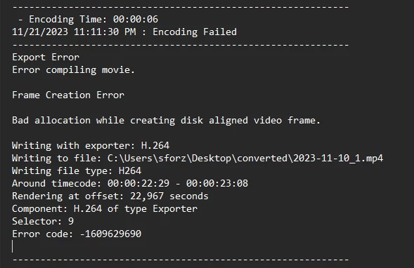 From a couple of days suddenly Media Encoder fails all the type of conversion/exports.