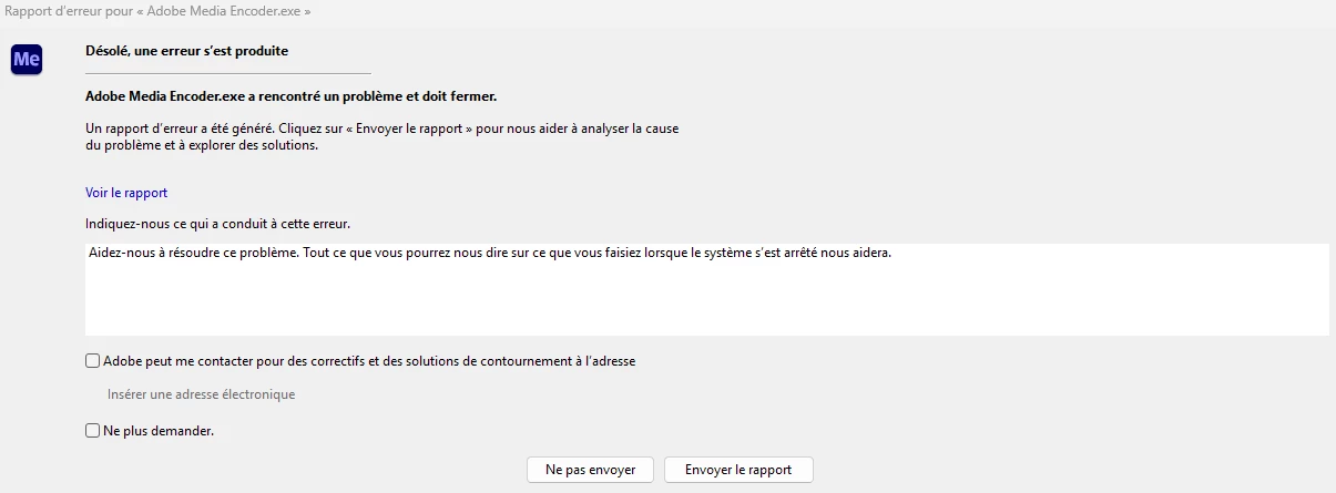 Media Encoder ne démmarre plus ou plante