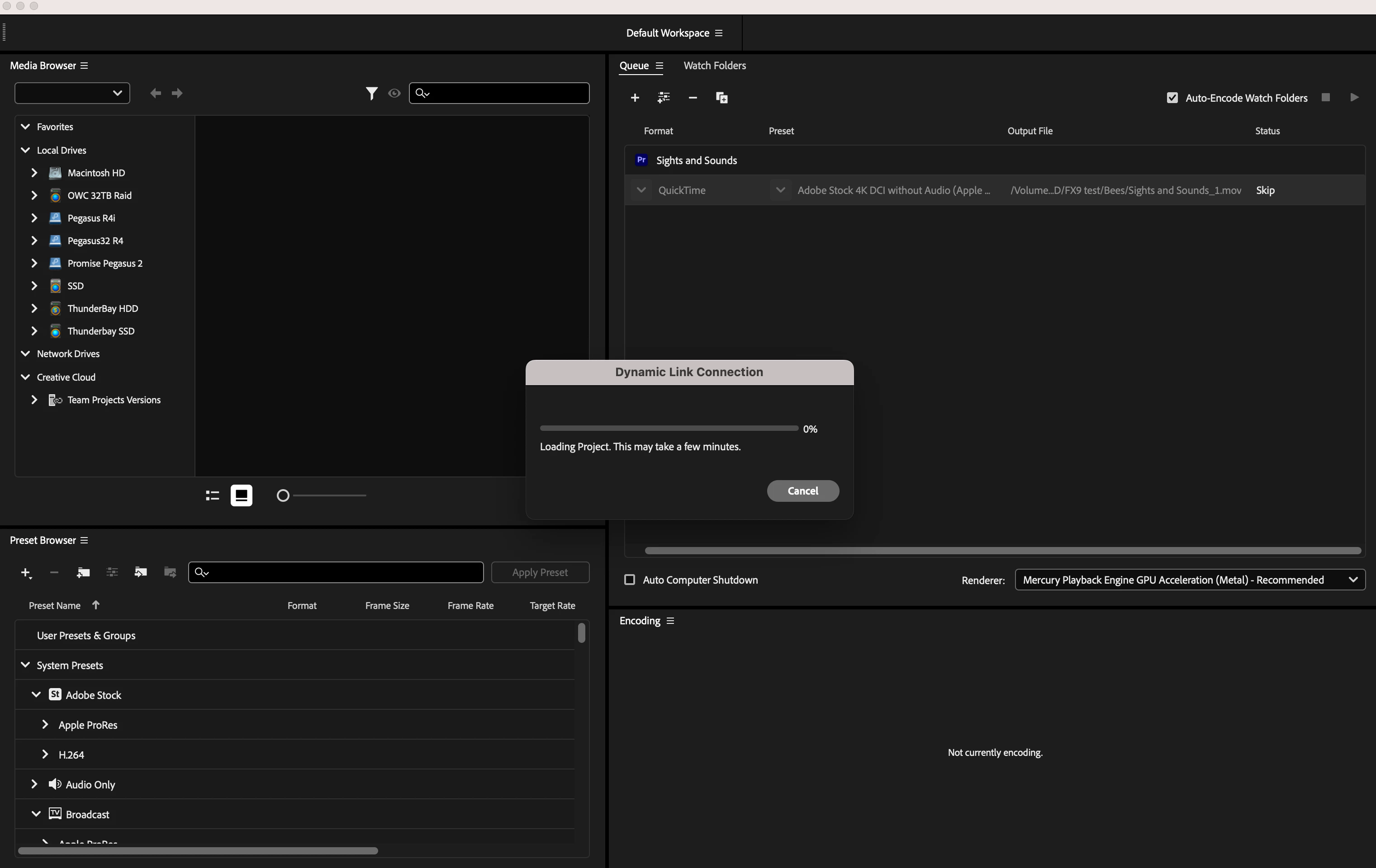 When I send a sequence to export to ME it no longer encodes but it says it's Encoding. When I go to "stop" it tells me that it is Encoding do I want to strop it?