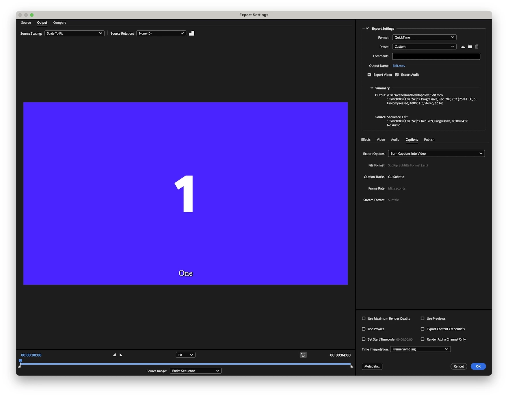 - If I export using the preset without modifying any settings in Premiere's Export window, the sequence is exported correctly by AME, with no captions burned in.