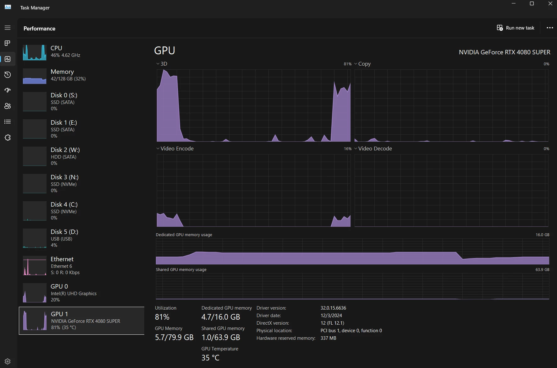 Screenshots attached. When I render in Premiere, my RTX 4080 S is at ~80% usage, intel iGPU at ~20%, and i9 14900k at ~30%.