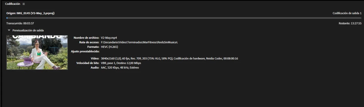Buenas gente, quisiera saber si a alguien mas le pasa o le paso. Que Media enconder renderiza exageradamente lento. Antes no me sucedia, pero ahora exportar un video en full Hd de 8 min me tarda mas de 2 hs!!! Tengo una 3070 y un i7 de 12va gen y 32 gb de ram... Es decir q deberia andar sobrado, ya he probado de todo, desinstalar e instalar devuelta, bajar driver de nvidia studio, borrar cache, fijarme que este renderizando con la placa, tiene 24 gb reservados solamente para los programas de adobe, cierro todo lo que me pueda consumir recursos y aun asi tarda una barbaridad... La verdad ya es frustrante, alguna solucion extra??? Que no sean las tipicas que se venn por todos lados, algo q realmente funcione