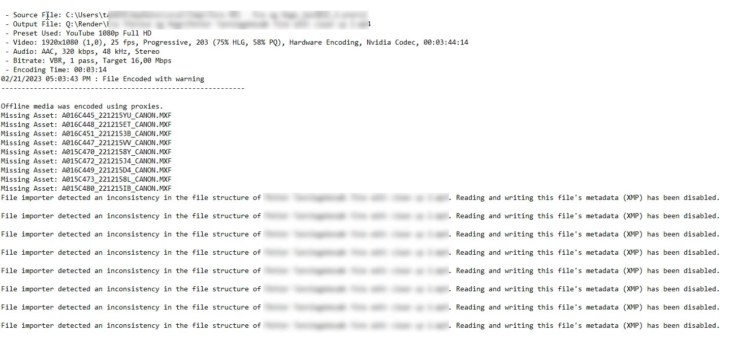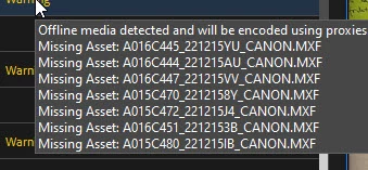 I've exported a sequence from Premiere to be rendered in AME. No missing or offline files are reported in Premiere, but when AME opens I get a warning.