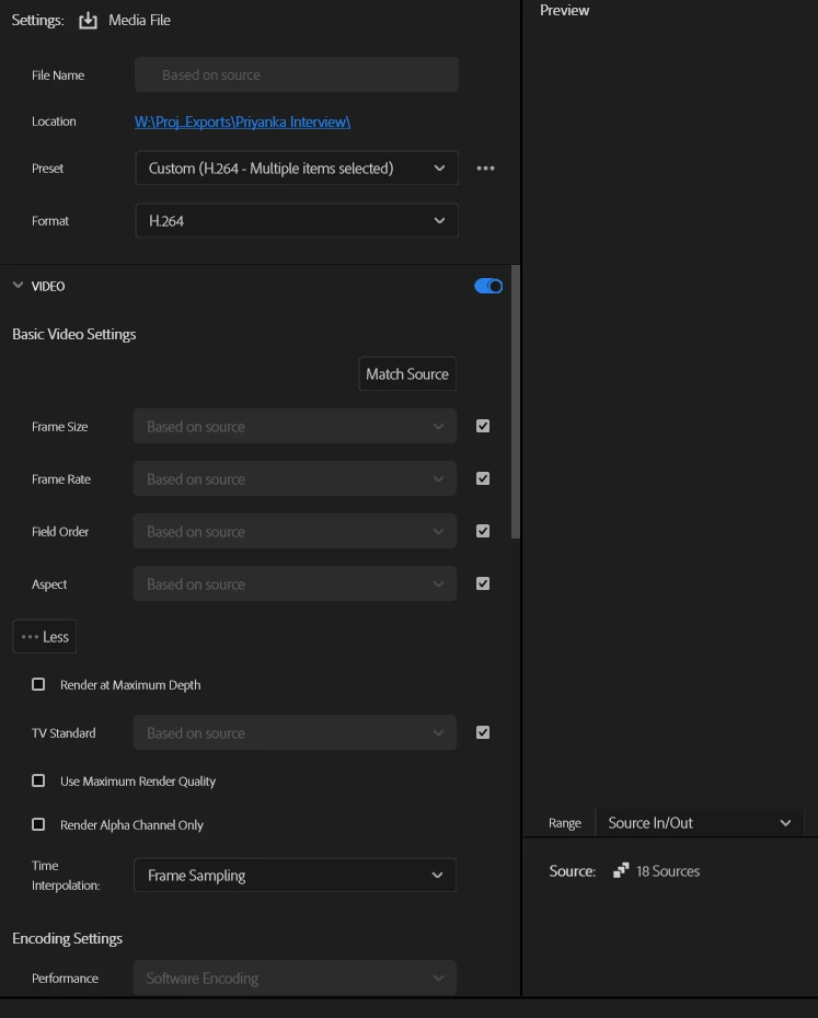 Additionally if I select all the outputs in the Media Encoder Queue and edit the settings to specify Source In to Out. I get the warning that I am affecting multiple entries, however in fact only one is changed. It works correctly for other settings but not for output range.