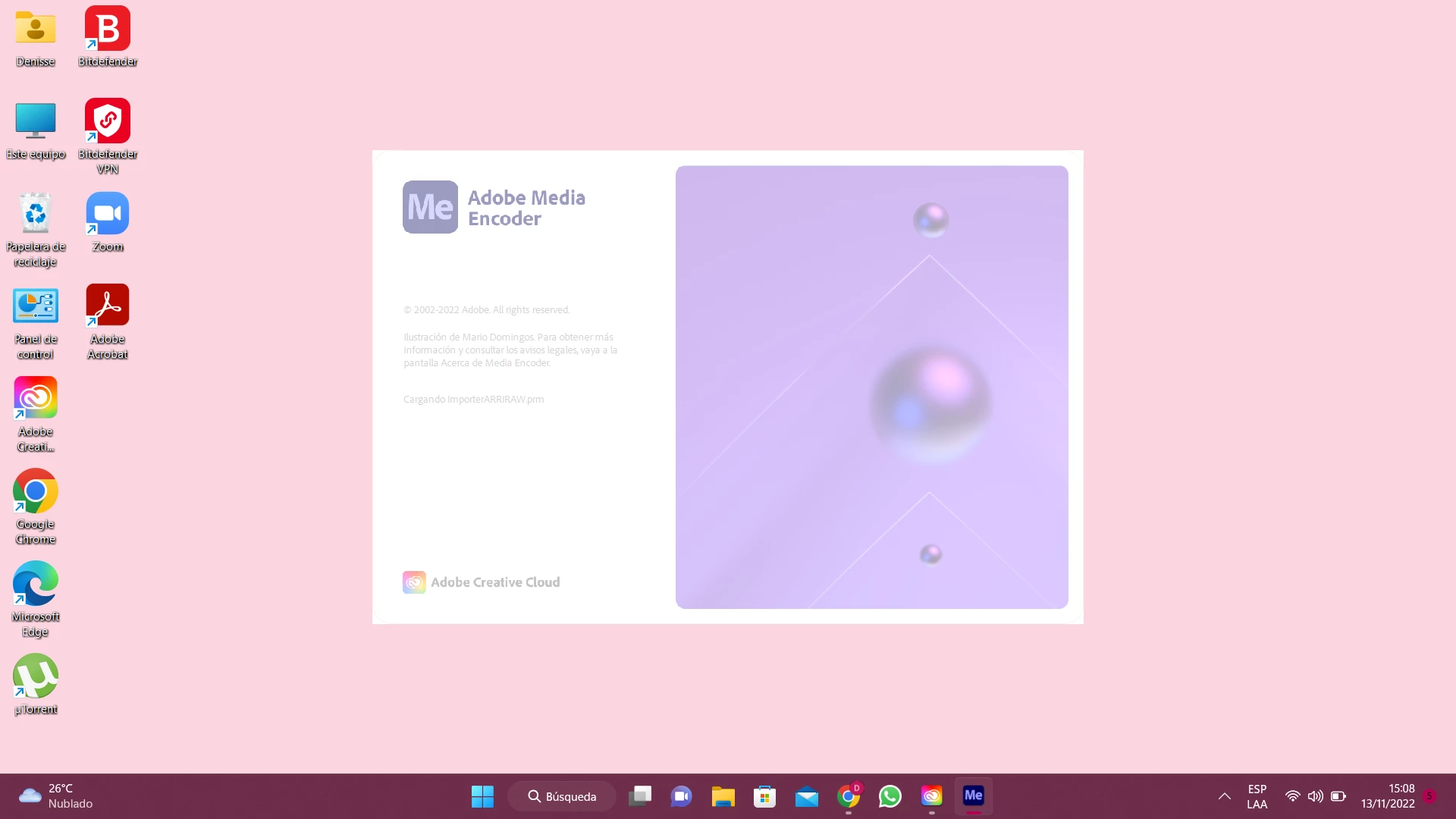 every time I try to open media encoder it stops and never opens as seen in the image, I wait about 15 or 20 minutes but it never happens. I uninstalled it and downloaded it again but the same thing happens. Please I need to work and I need help.