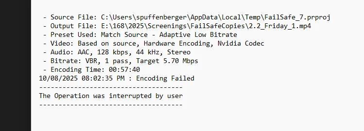 Log just says "encoding failed." No clue why.