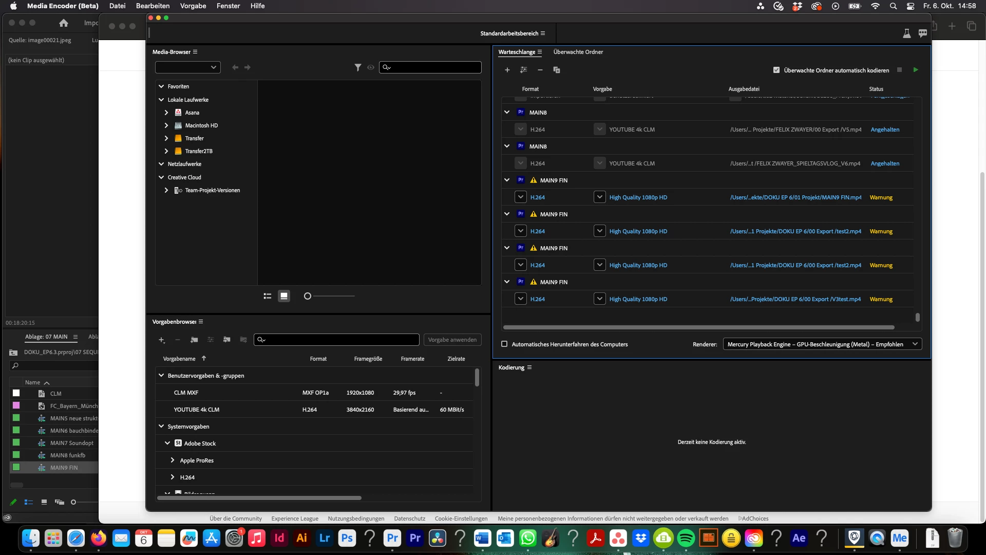 Media Encoder (Beta) zeigt an, dass Offline Medien erkannt wurden, obwohl alle Dateien vernüpft sind. Der direkte export über Premiere funktioniert Fehlerfrei.