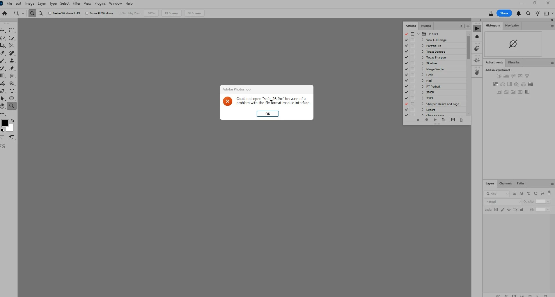 Hi @StefanKlein , sorry this is happening to you. I have seen your other post from a month ago in the pre-release forum. Are you getting this message even when you are not importing / dragging in a 3D model? In other words does it pop up without automatically? Are you at least able to use the Viewer? The pop up message seems to only be showing up on the Photoshop plugin side.