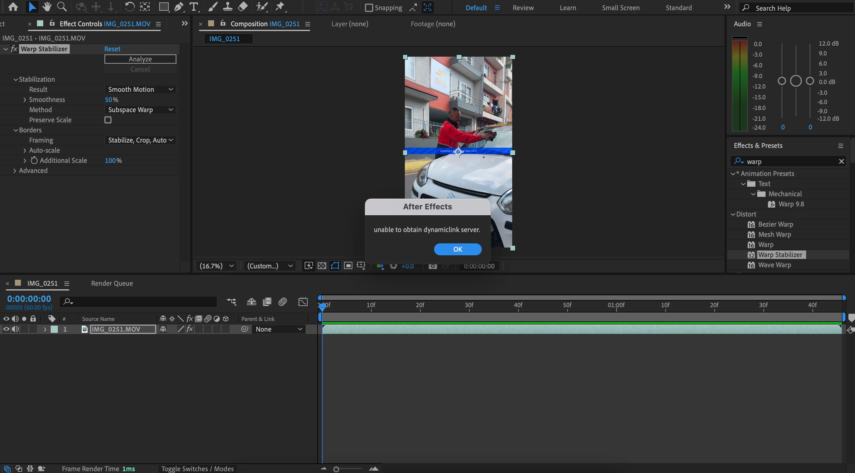 I use After effect v24. Whenever i try to use 3D camera tracker and Warp Stabilizer, i get error: Unable to obtain dynamic link server. Please help me to solve this issues.