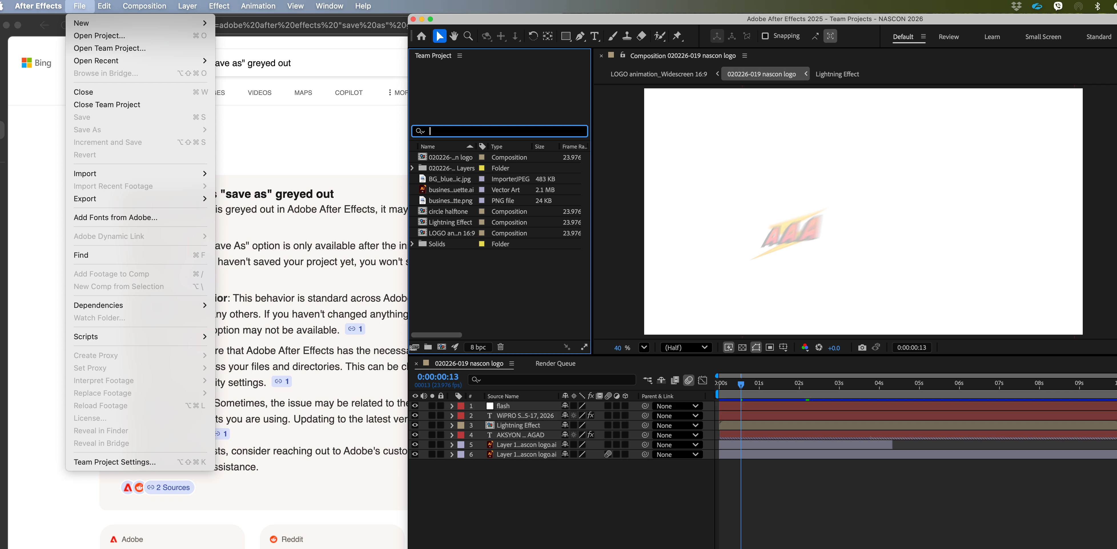I made a team project on the AE and have created my .aep file as usual. Upon saving and exporting the final video. I’ve learned that the project file cannot be saved. I have searched online for it but I cannot find the same issue in this current version.