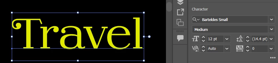 Barteldes Small is from Adobe Fonts, it displays correctly in other Adobe programs but not in After Effects. Here is what it is supposed to look like in Illustrator: