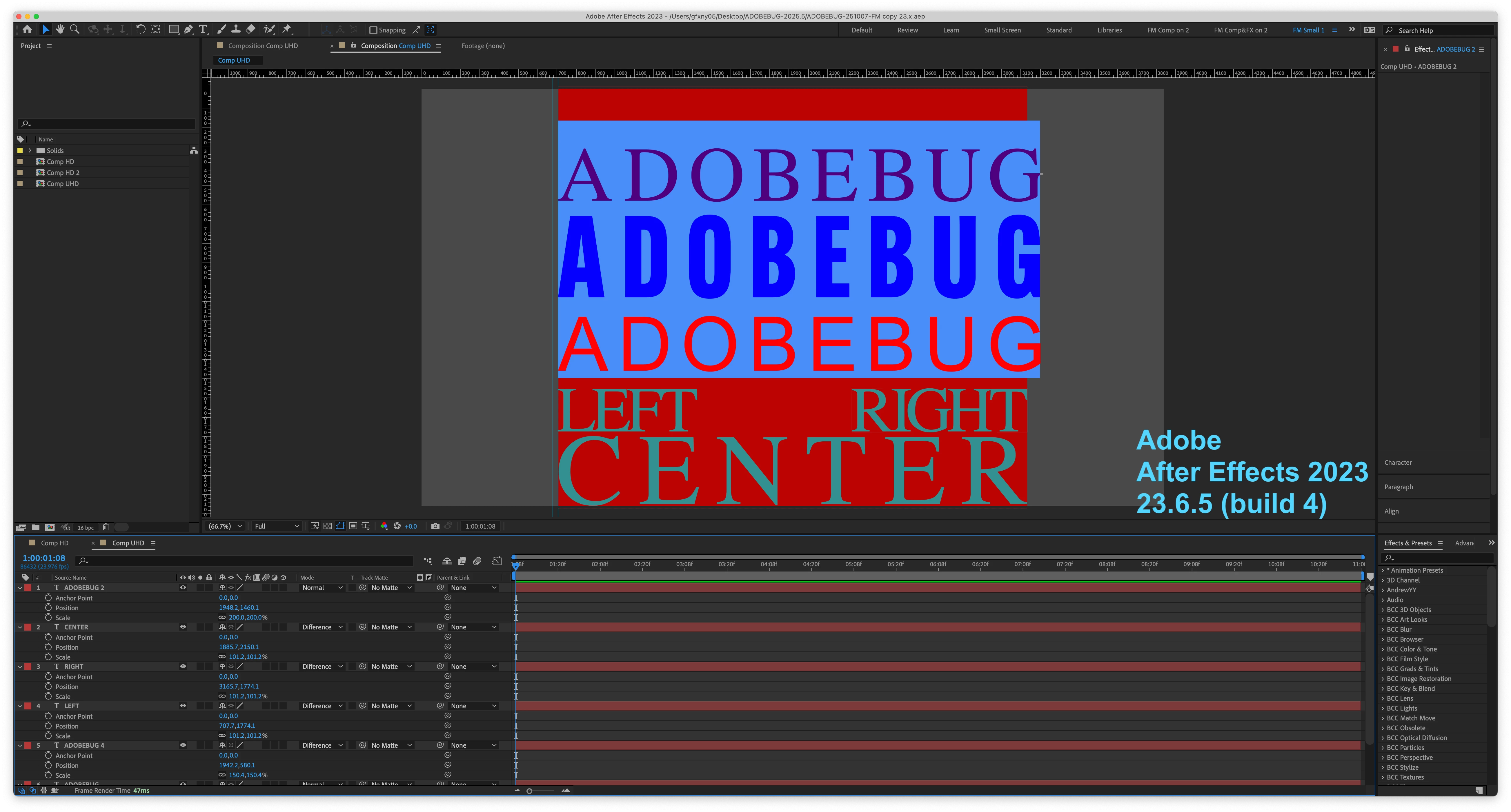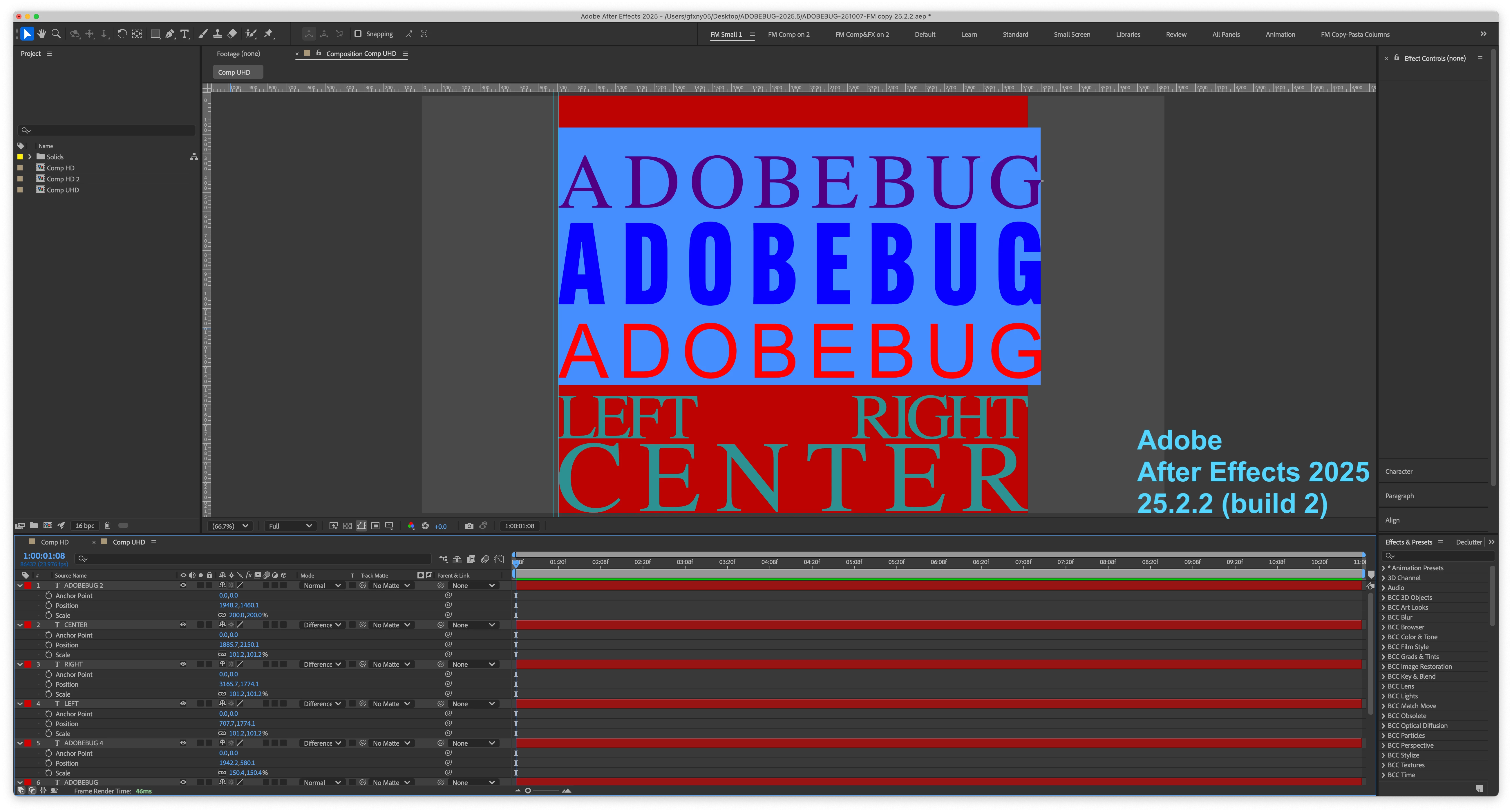 AE 2025 - CRITICAL BUG!! - AE 25.5.0; unaligned text - placement error/inconsistency
