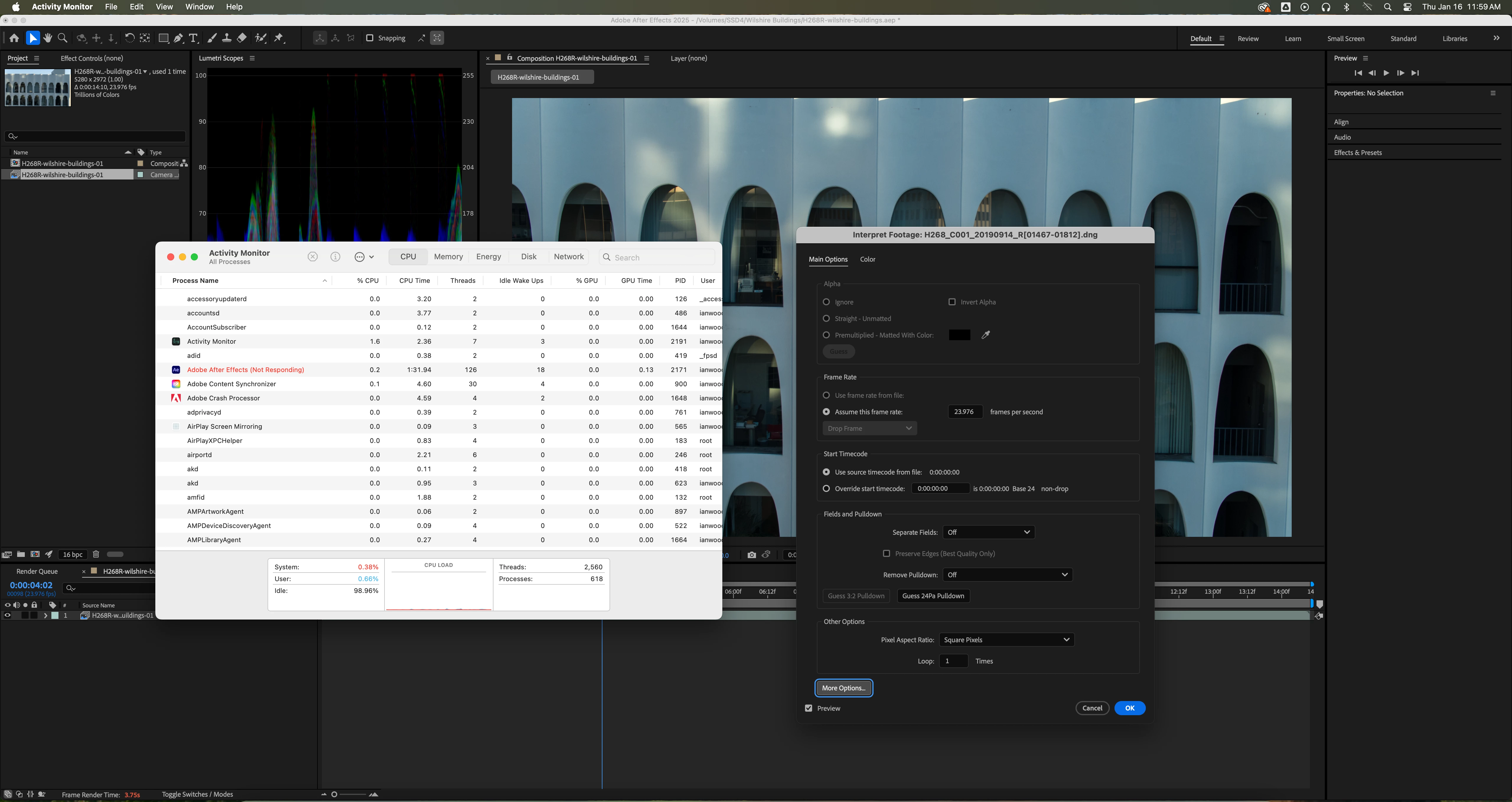 AE 25.1 Freezes Opening / Exiting Camera RAW with Cinema DNG Sequence