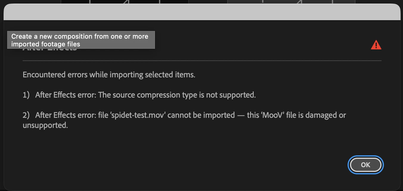 After Effects 2025 & 2026 ERROR with imported mp4, mov and swf files