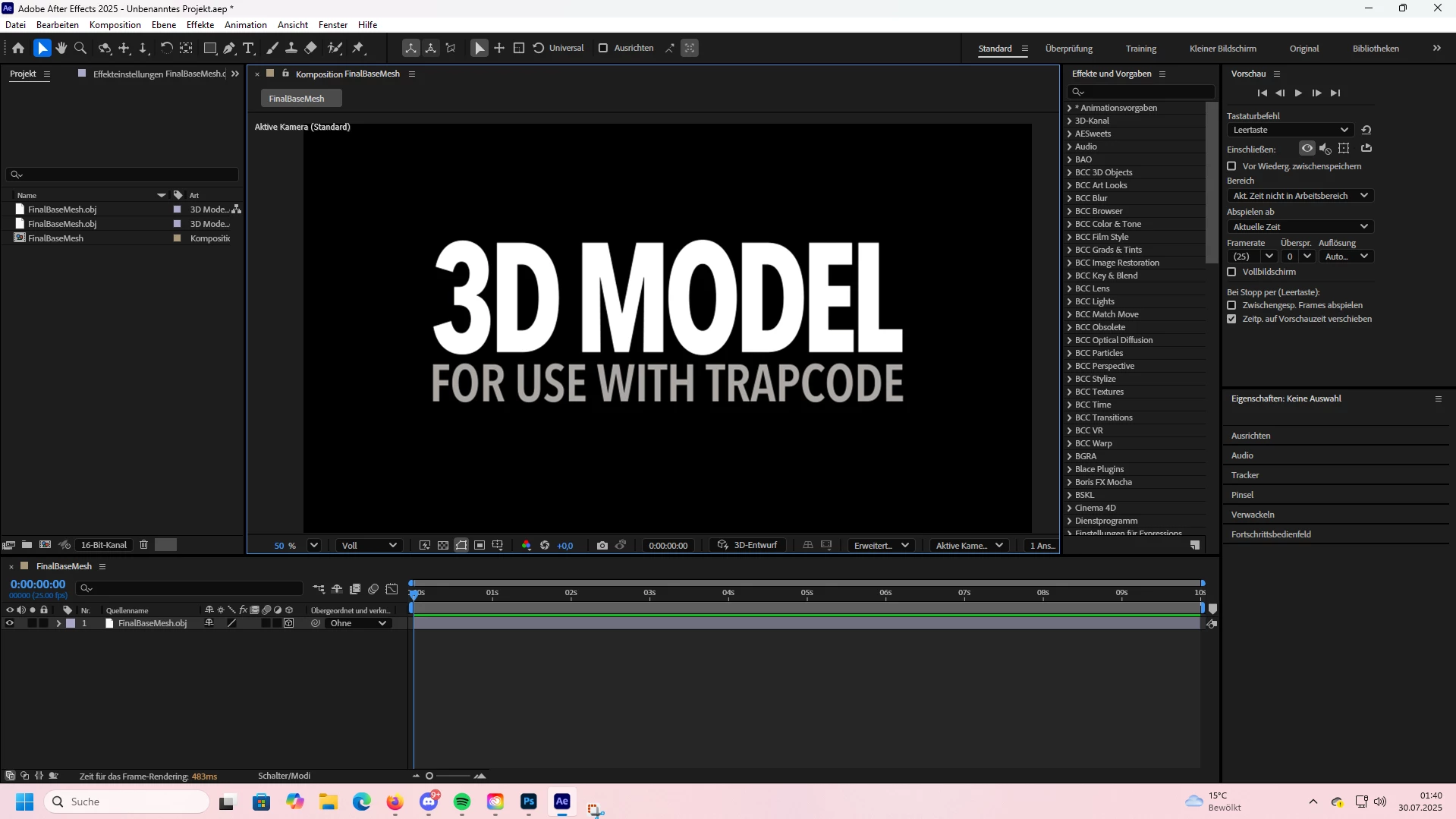 In After Effects, every time I import a 3D object, it is automatically recognized as a Trapcode object, even though I am using the correct AE version and workflow.