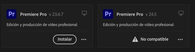 But the 2023 apps like Premiere, Media Encoder or After Effects (in his last working version for my mac) crashed when I try to open it. It's a very strange bug, because they fail in the launch, that's meaning the app crash before the window of the app appears. I clicked in the app icon, the app is jumping in the deck and a few seconds after apperars a crash inform with any information about the crash.
