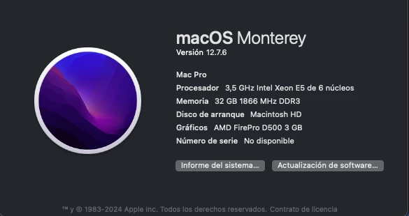 I've attached two captures with my Mac technical info (Mac Pro 2013 Intel Xeon E5 and 32 GB of RAM) and one capture with the creative cloud app where you could see that v24 is not supported. Only v23.6.7.