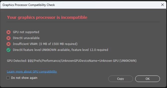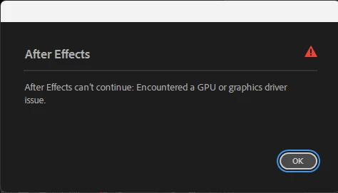 "After Effects crash: can't continue. Encountered a GPU or graphics driver issue."