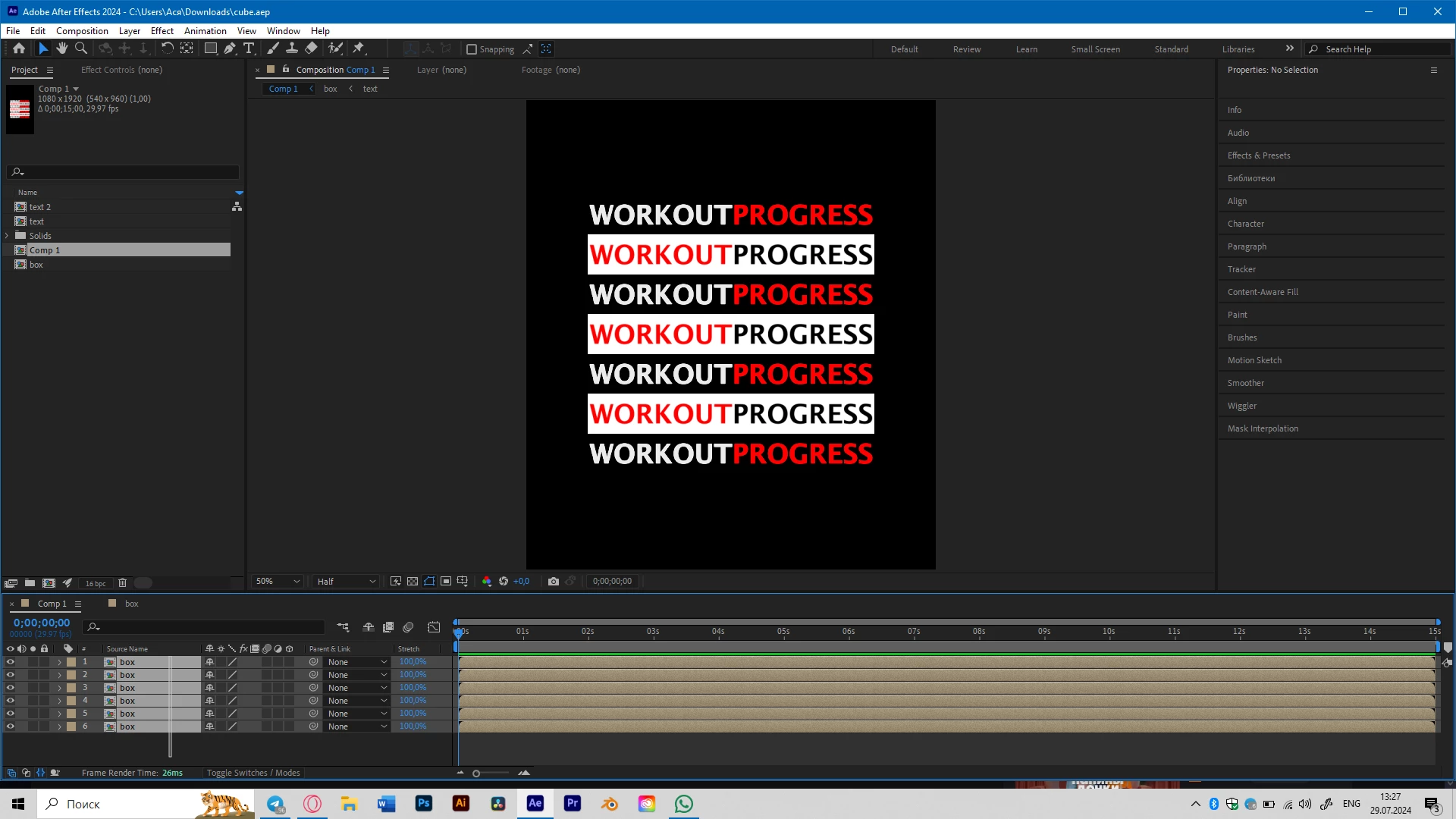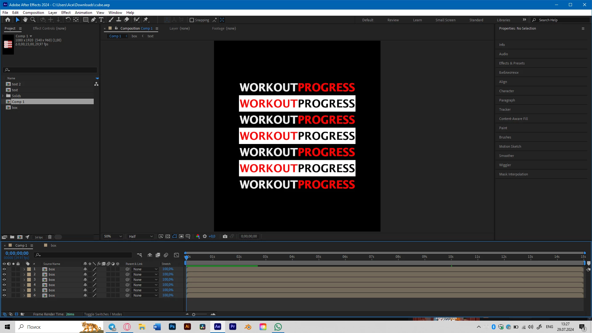 Laptop characteristics: 16GB RAM, RTX3060ti, 476GB SSD. I think it is enough for such a simple animation.