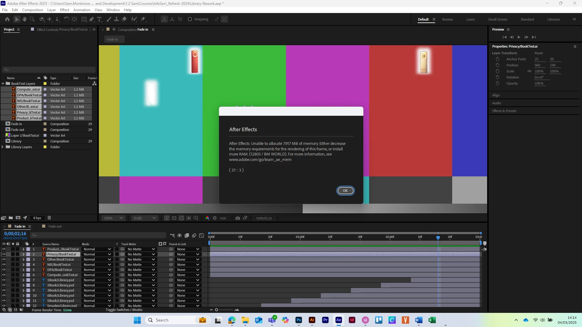 I have the creative cloud suite and use these daily, but after effects seems to crash routinely, sometime within minutes, some times within about 45 minutes. This will then crash my entire machine, and while some functionality comes back eventually, I have to restart to be able to do anything useful. It always pops up with the same error about running out of memory, but having spoken to my internal IT team, the laptop is more than powerful enough to run this (HP ZBook Firefly G11, 32GB RAM), and i use to run it on a lesser machine perfectly fine. Is there any settings that might be causing this? I'm pulling my hair out!