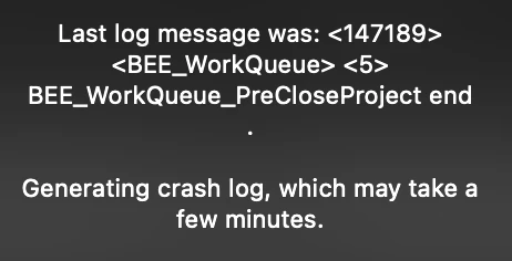 Last log message was: <144887> <BEE_WorkQueue> <5> BEE_WorkQueue_PreCloseProject end