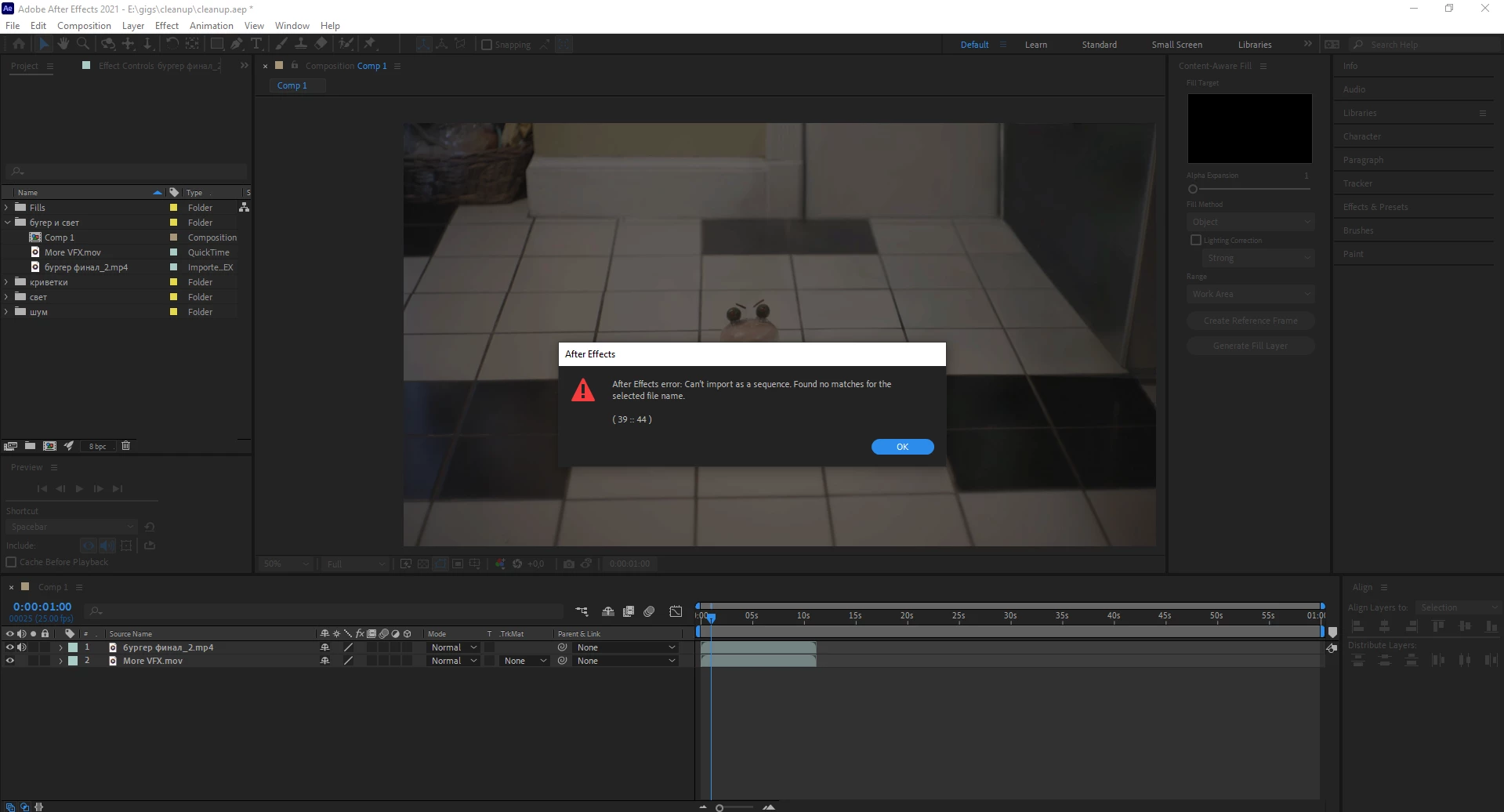 After Effects error: Can't import as a sequence. Found no matches for the selected file name.