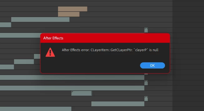 After Effects error CLayerItem::GetCLayerPtr: 'clayerP' is null