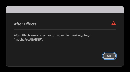 After Effects error: crash occurred while invoking plug-in "mocha ProAEAEGP".