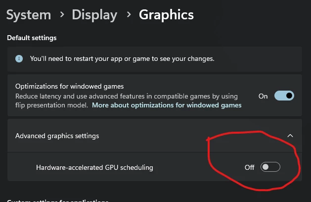 @edddim I turned off Hardware-accelerated GPU scheduling in Windows 11. So far, I've gone 24 hours without any errors in AE. I’m not sure if this will help everyone, but it's something really simple to do. Go to System > Display > Graphics / Advanced graphics settings / Hardware-accelerated GPU scheduling.