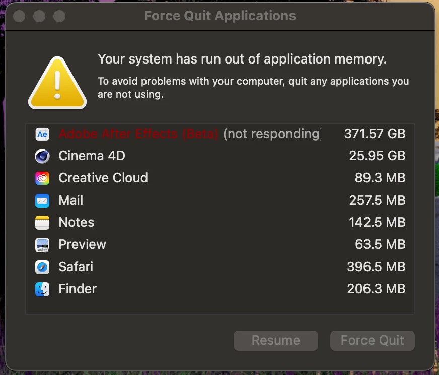 After Effects low memory warning 24.1!