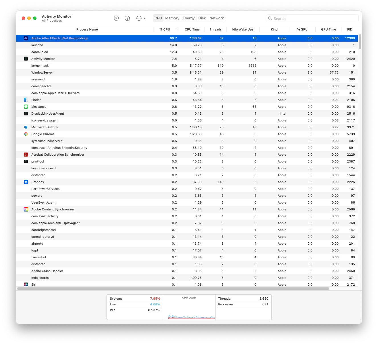 After effects unresponsive for 5 minutes at launch