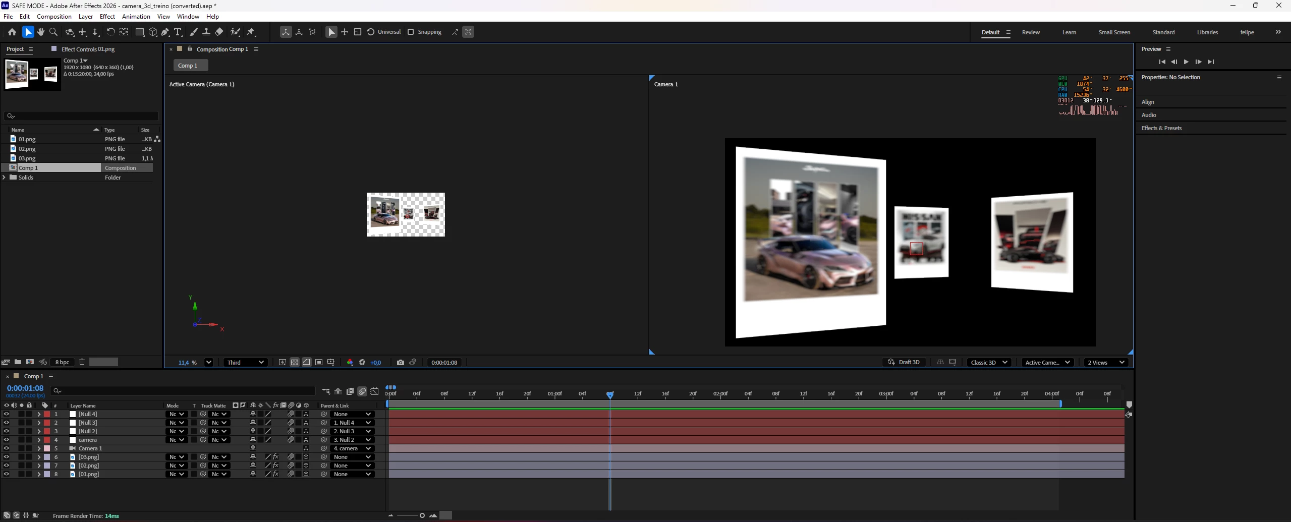 After Effects version 26.0 freezes when I use the 3D camera with two views.