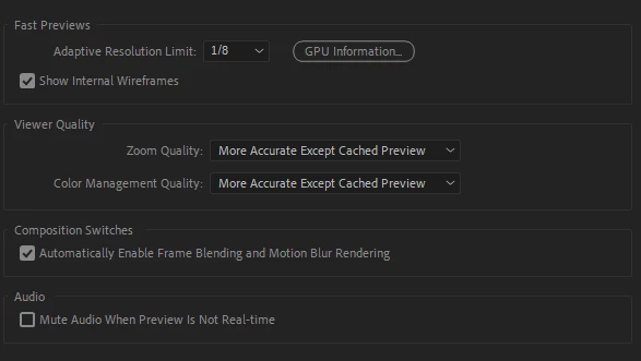 So when I preview my project it plays perfectly fine until it reaches a specific clip on in the comp and audio cuts off. Whenever I delete the clip and preview again the audio just cuts out at another clip later on. Also whenever I preview starting at a clip where the audio cuts out it takes forever to load the preview, then the clip plays fine but the same issue occurs and audio cuts on another different clip. I have tried purging Memory & Disk Cache many times, I even converted the audio files because they were .WAV and I thought that was the issue. Restarting and Reinstalling haven't worked either, and it isn't a high framerate issue I believe. When I delete all .MP3 files from the comp the preview plays flawlessly with no freezing or slowing down.