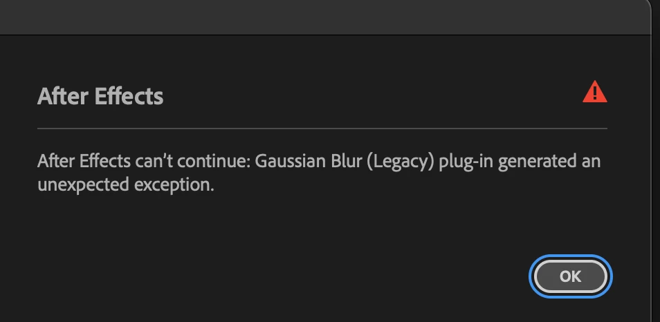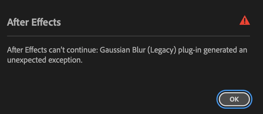- After Effects can't continue: Gaussian Blur (Legacy) plug-in generated an unexpected exception.