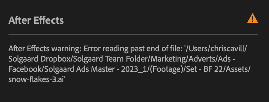 I am having some issues opening my master AE file to export simple adverts. It seems to crash the moment i open it.