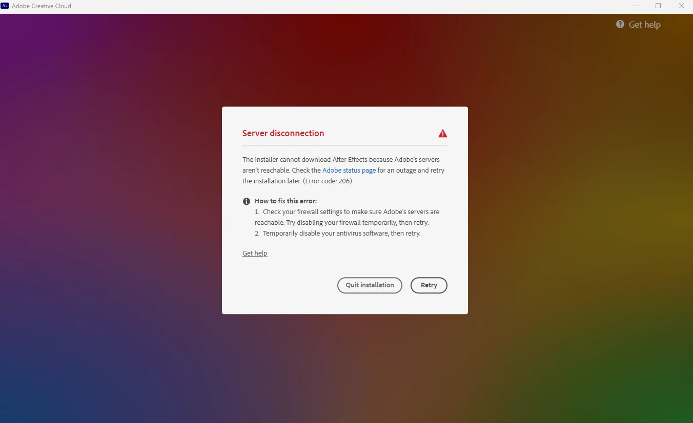 cant set up creative cloud