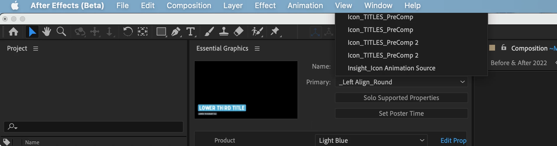 Drop-down menus with a lot of items in them like Essential Graphics ALWAYS open off-screen so you can't scroll all the way to the top or bottom (depending on where the panel is that you're opening from.