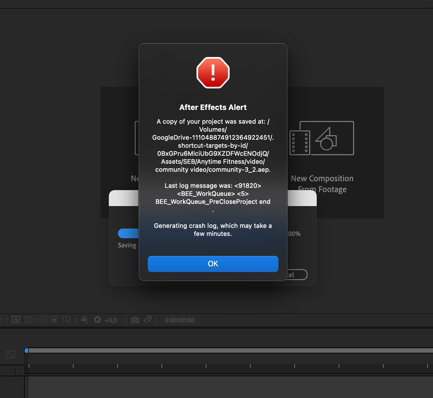When I oppend the file after working it, AE gives me thtat error. I've been tried re installing, deleting all preferences, re booting, and nothing happens.