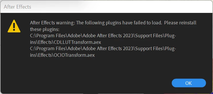 Failed to load plugins After Effects 2023