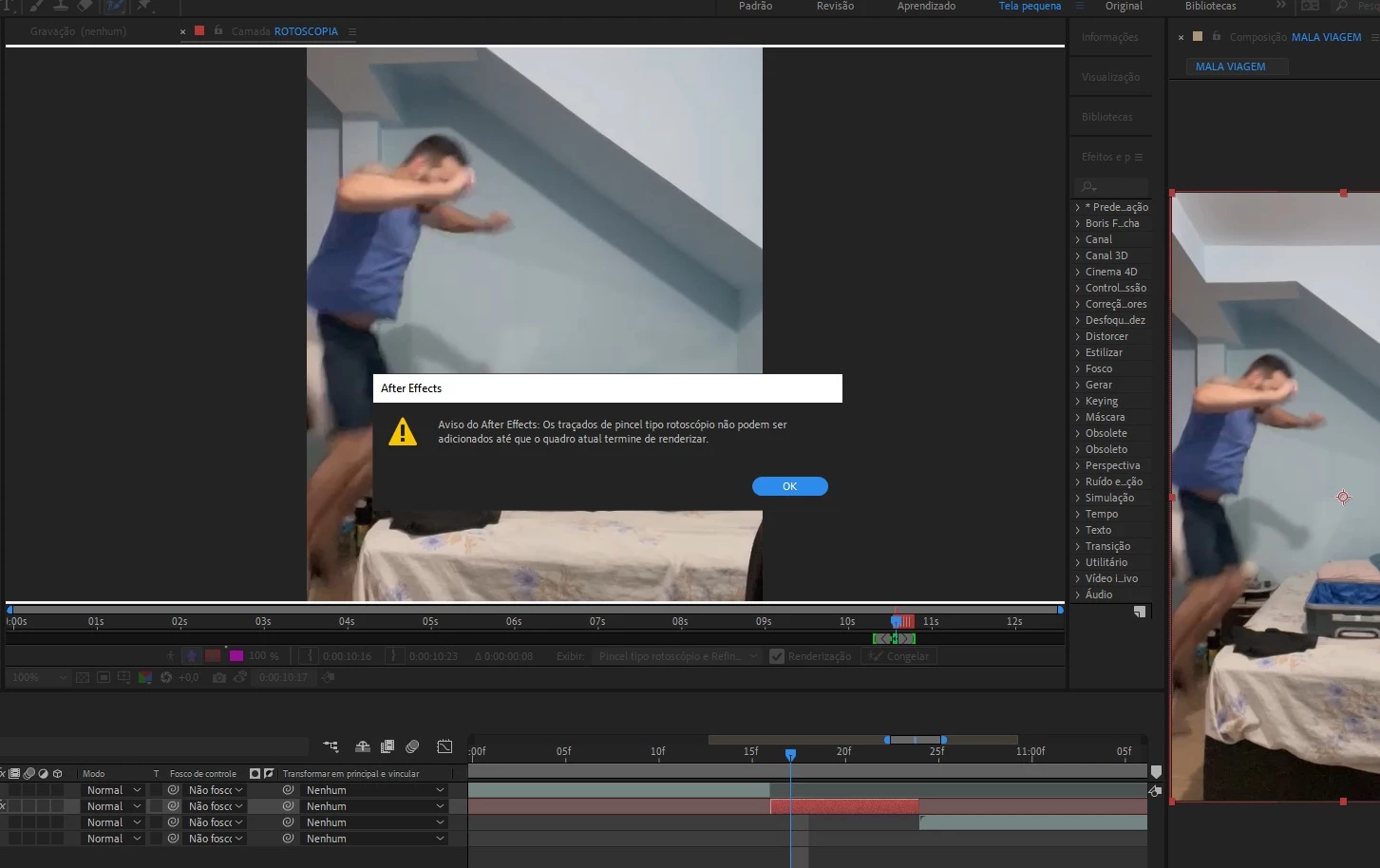 Ao usar a ferramenta do pincel tipo rotoscopico nao consigo fazer o recorte da figura. Já alterei a chave quadro para 29,996 e mesmo assim nao é possivel. Poderiam ajudar?