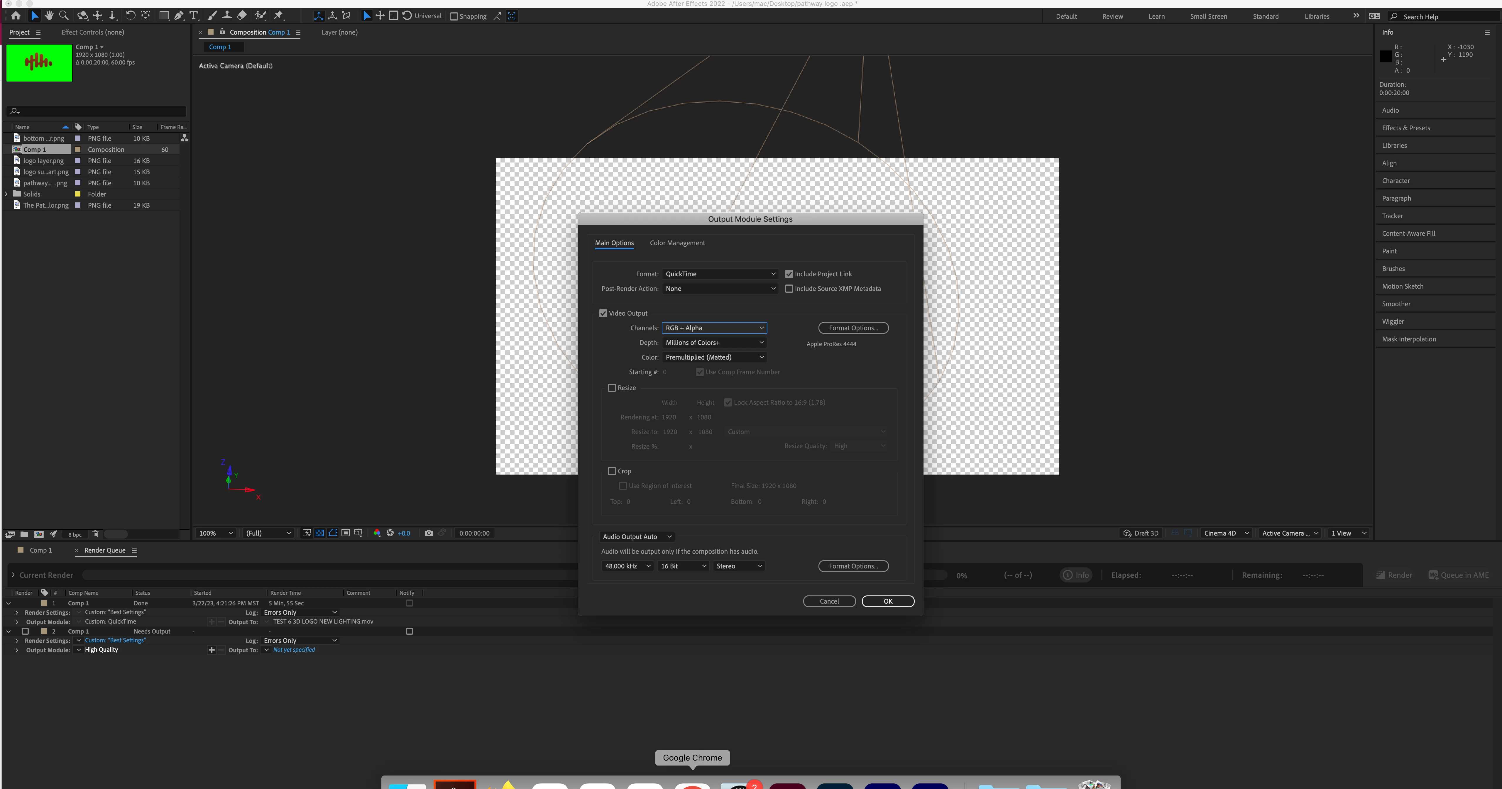 The only thing I've been changing is Video Coden from Apple prores 422 to Animation or Apple ProRes 4444.