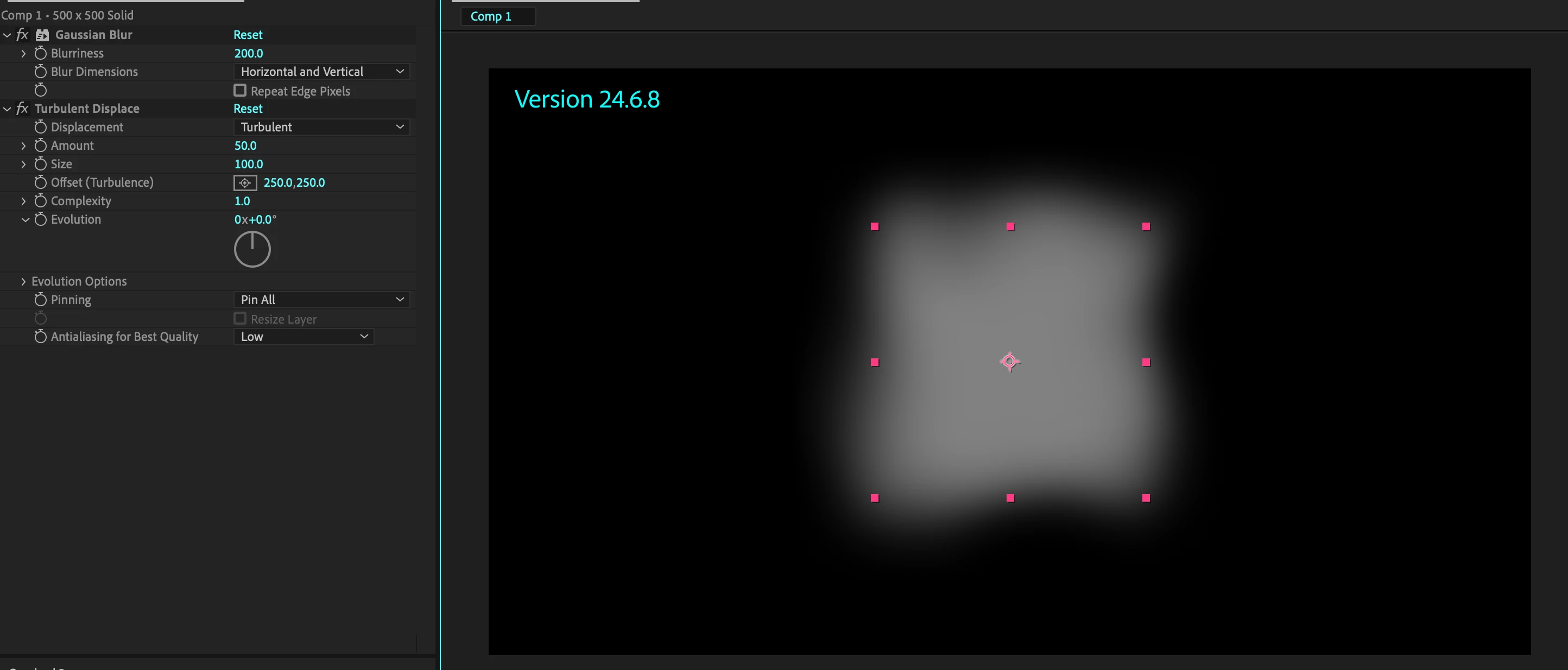 I noticed today that when using a Gaussian Blur effect (and most of the other blurs) with Repeat Edge Pixels disabled combined with a Turbulent Displace effect in version 25.4, the blur seems to cause the bounds of the layer to shift towards the top left. It doesn't seem to matter what the Turbulent Displace settings are either, but it only happens when both effects are applied. I also reinstalled the latest version of 24 to test as I've never seen this happen before, and I wasn't able to recreate the issue there.