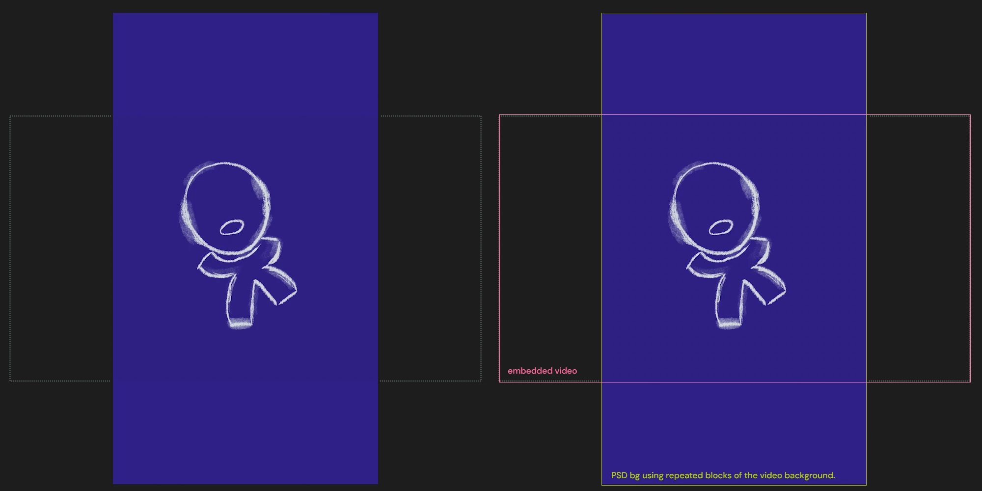 Because the video is compressed, the background isn't one solid blue. The PSD in the background uses a "patchwork" of the blue background from a screenshot of the video.